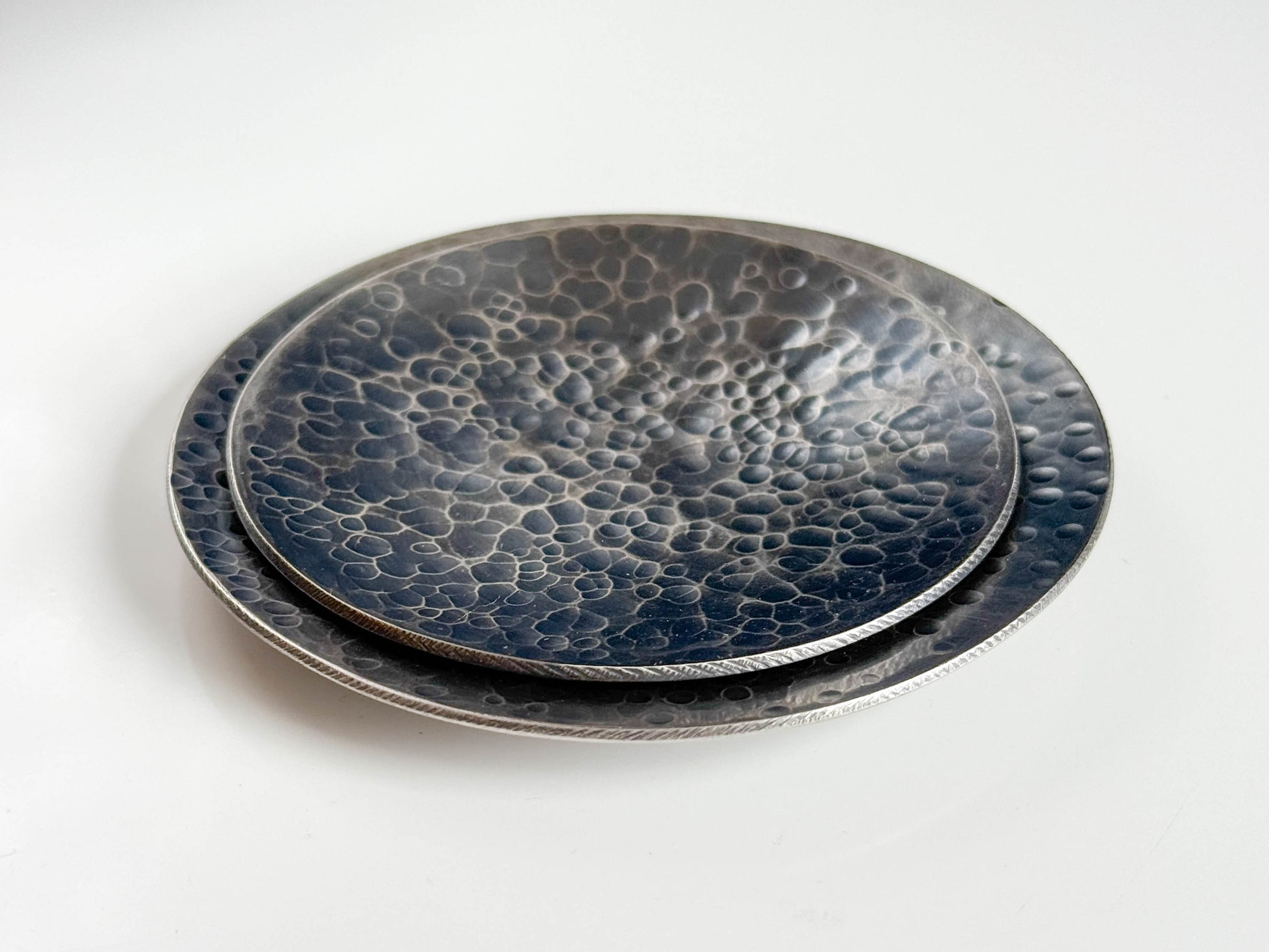 Hammered shallow silver dish for anything and everything (small things anyway). Tea candles, rings, spare change, spoon rest, keys. etc! Also rings beautifully when struck gently (musical spoon rest?).