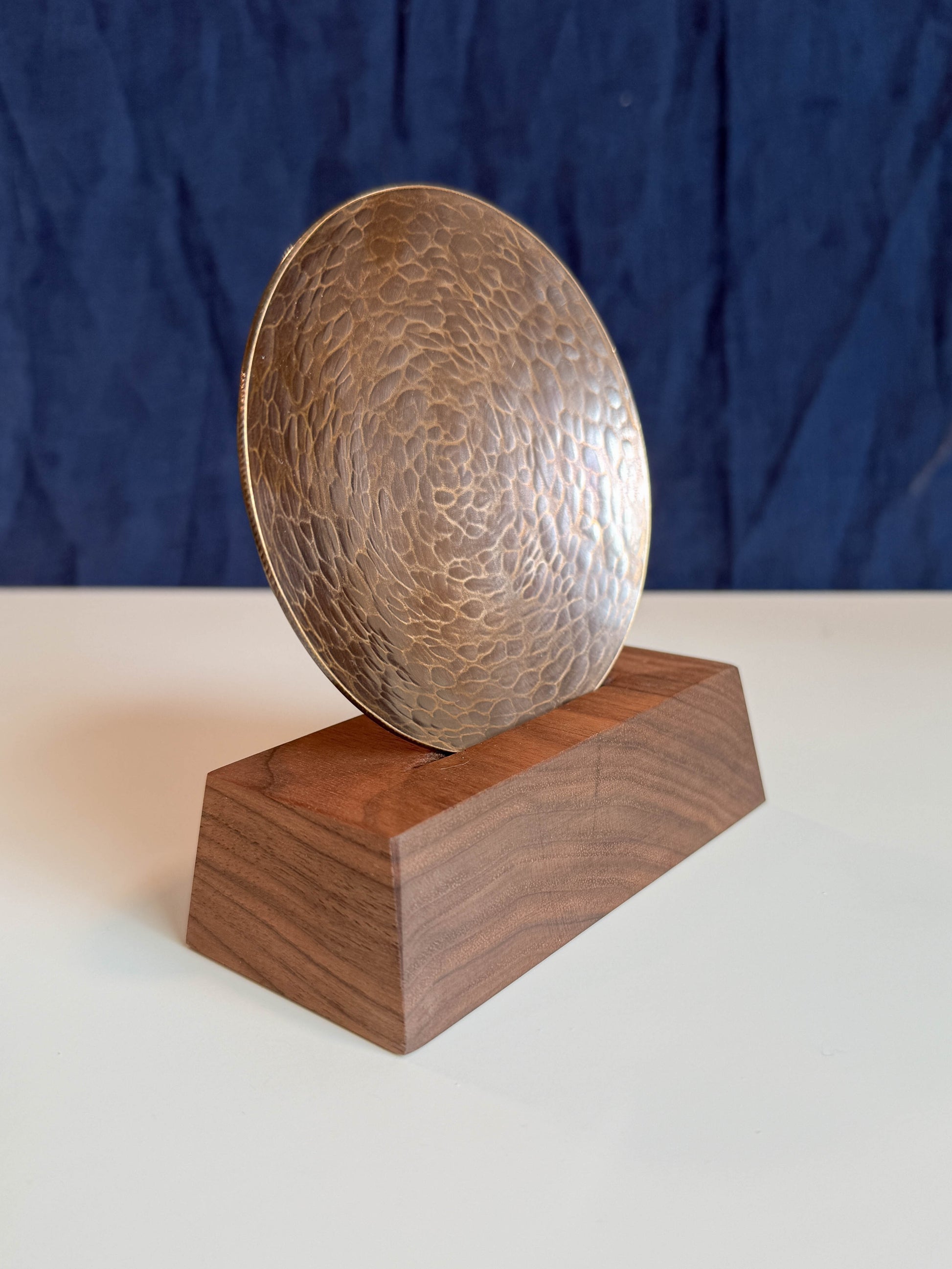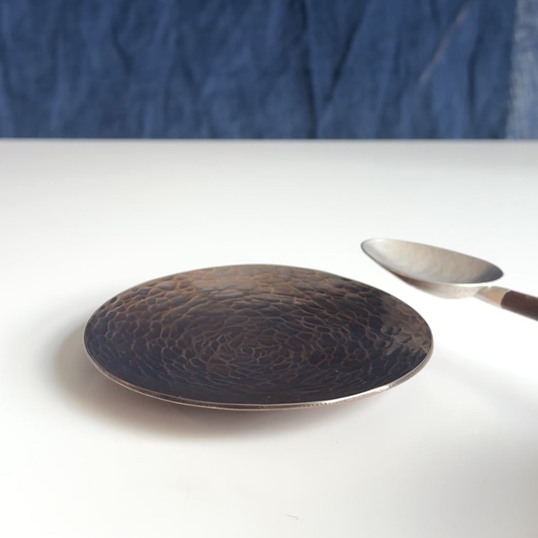 Hammered shallow bronze dish for anything and everything (small things anyway). Tea candles, rings, spare change, spoon rest, keys. etc! Also rings beautifully when struck gently (musical spoon rest?).